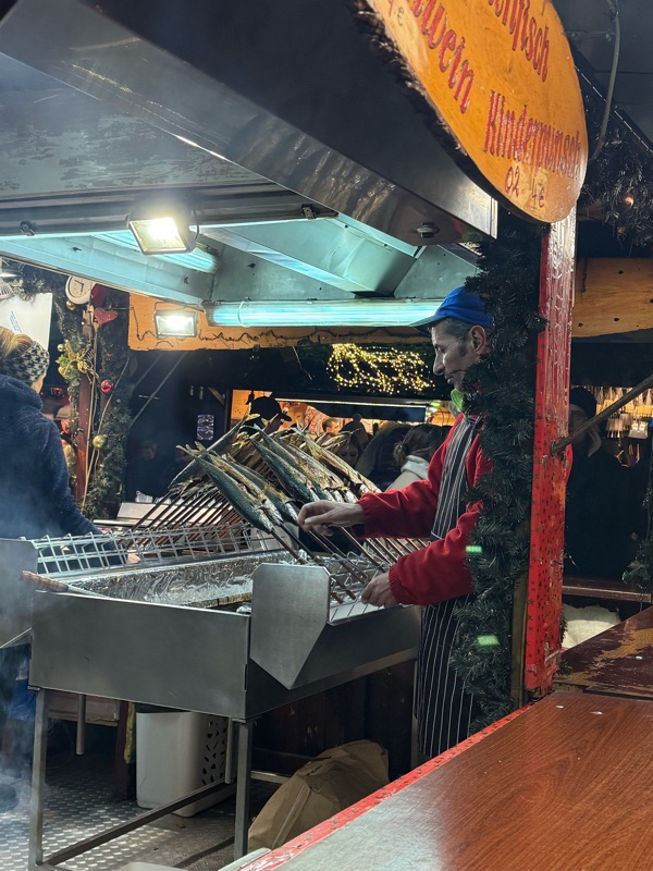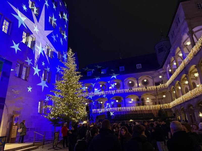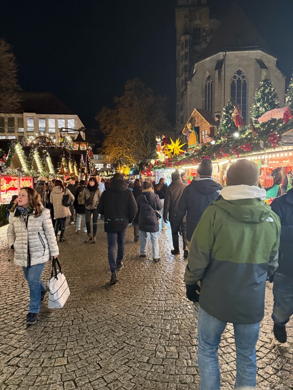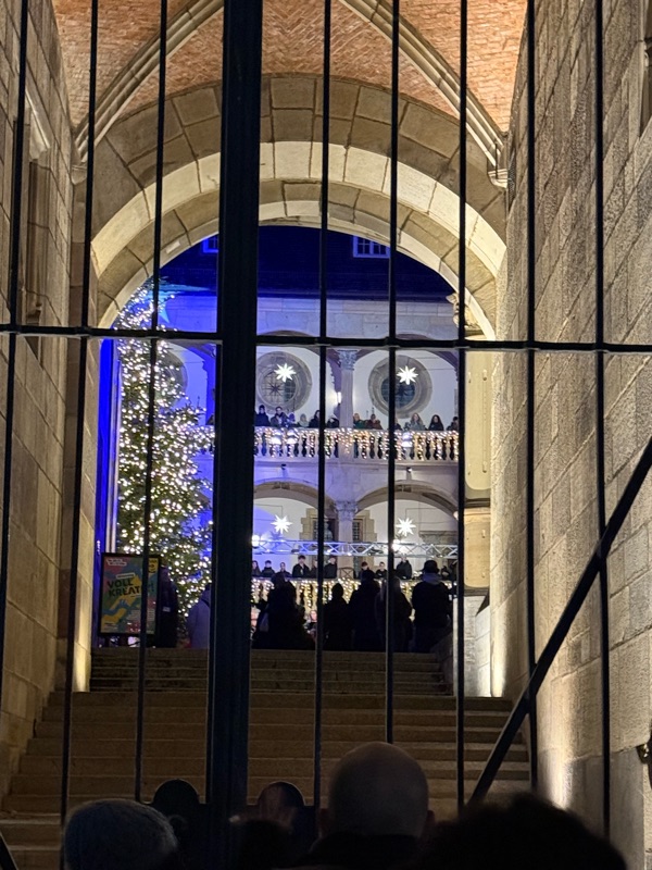 There were a number of different markets but all connected in the same area, which was nice. They were much more ornately decorated than the ones in Munich, so it looked and felt different. There was a choir singing in the courtyard of the castle, and the music traveled out into the streets. It was beautiful. I drank more gluhwein π· π€·π»♀️ Nate thought he ordered a beer and was drinking it saying it tasted like Sprite. I took a drink and said it was like flat Coke. Beau said it tasted like Pepsi (same thing as flat Coke). Then Beau looked at the alcohol content: Soda. π