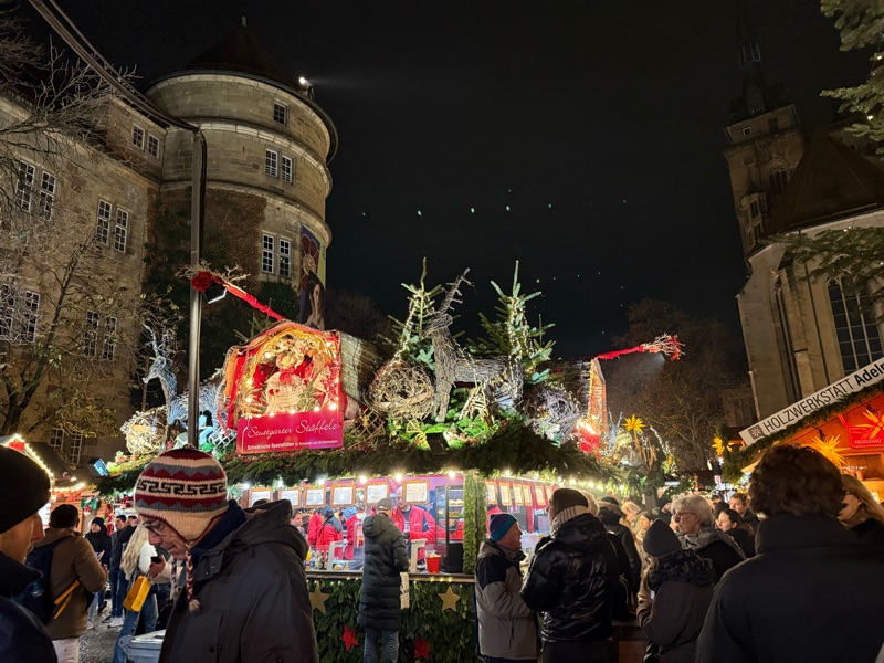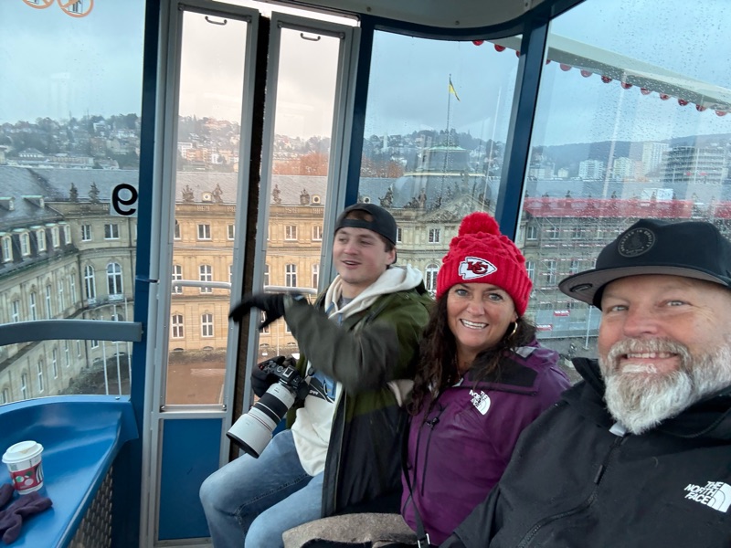 We didn’t really have plans on day one in Stuttgart, so we walked though the park to the Christmas Markets that were to open that evening. Then it started raining. Again. We hopped on the ferris wheel where Beau got some great photos, headed back to the hotel for a bit and then took the train back to the (now open) markets.